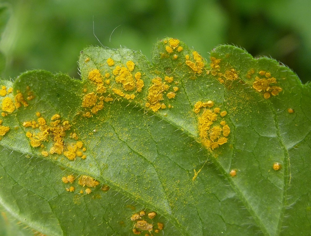 Uredien auf der Blattunterseite zerstreut, jung von der Epidermis bedeckt, später stäubend