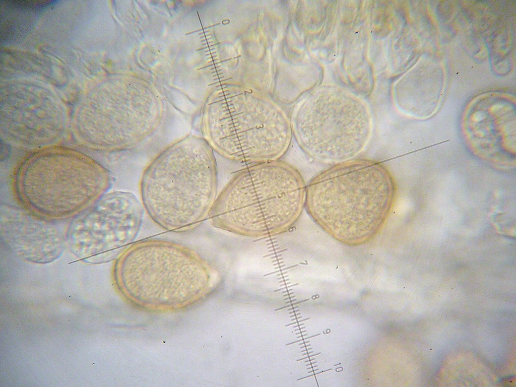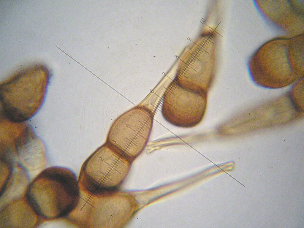 Teliosporen zweizellig, am Scheitel bis auf 8 µm verdickt