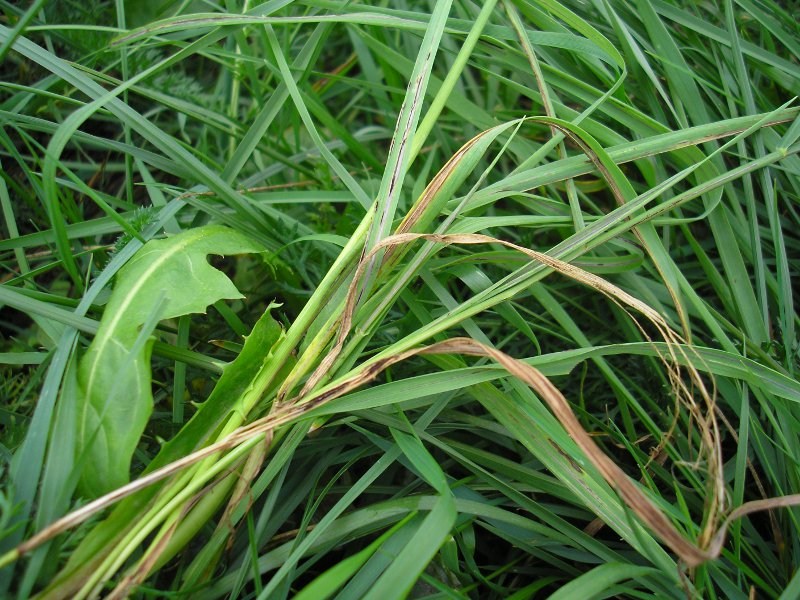 Befallene Pflanzen haben oft „Spliss“ (wenn der Befall älter ist, spalten sich die Blätter auf)