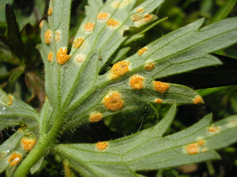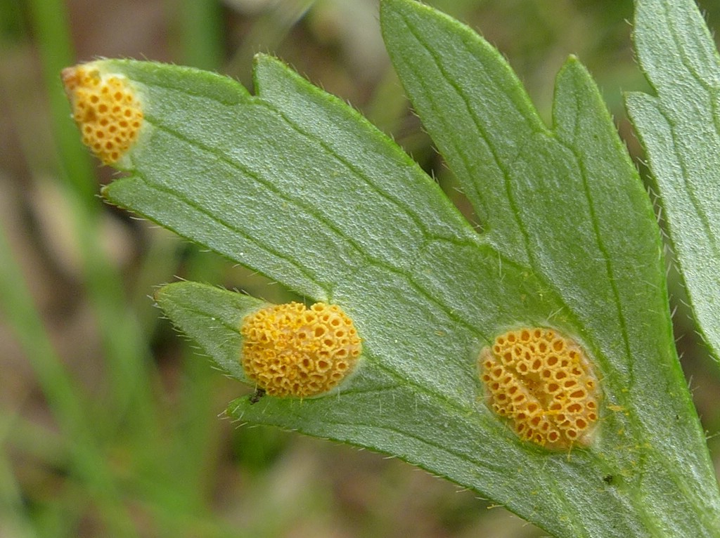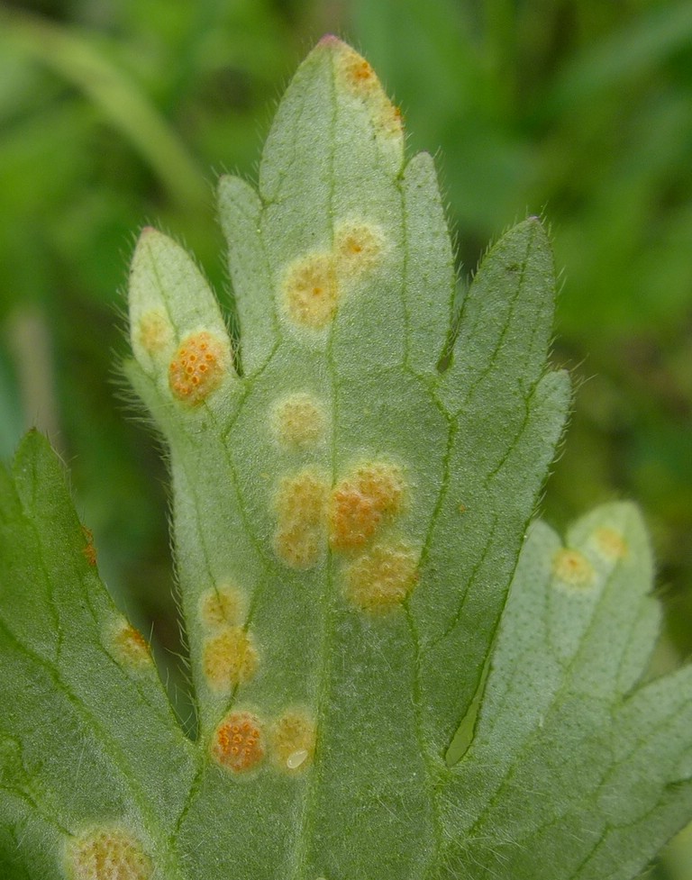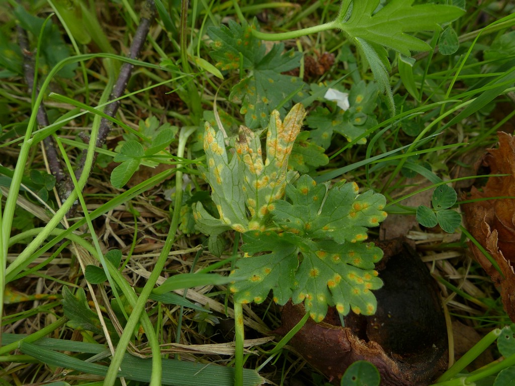 Bemerkung: Dieser Rostpilz vollführt einen Wirtswechsel. Es handelt sich hierbei um eine Artengruppe, welche bei Funden von becherförmigen Aezien auf Hahnenfuß Anwendung findet. Die genaue Art kann nur über die Kenntniss des Wirtswechselpartners und eine intensive mikroskopische Analyse bestimmt werden. Während auf verschiedenen Hahnenfußarten die Spermogonien und Aezien gebildet werden, wechselt der Pilz im Sommer auf verschiedene Vertreter der Süßgräser (Poaceae) um dort seine Entwicklung mit der Ausbildung von Uredien und Telien zu vollenden.
