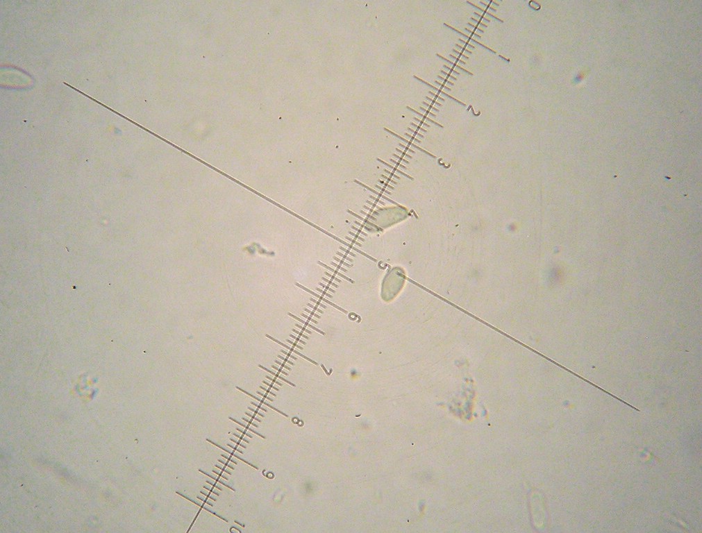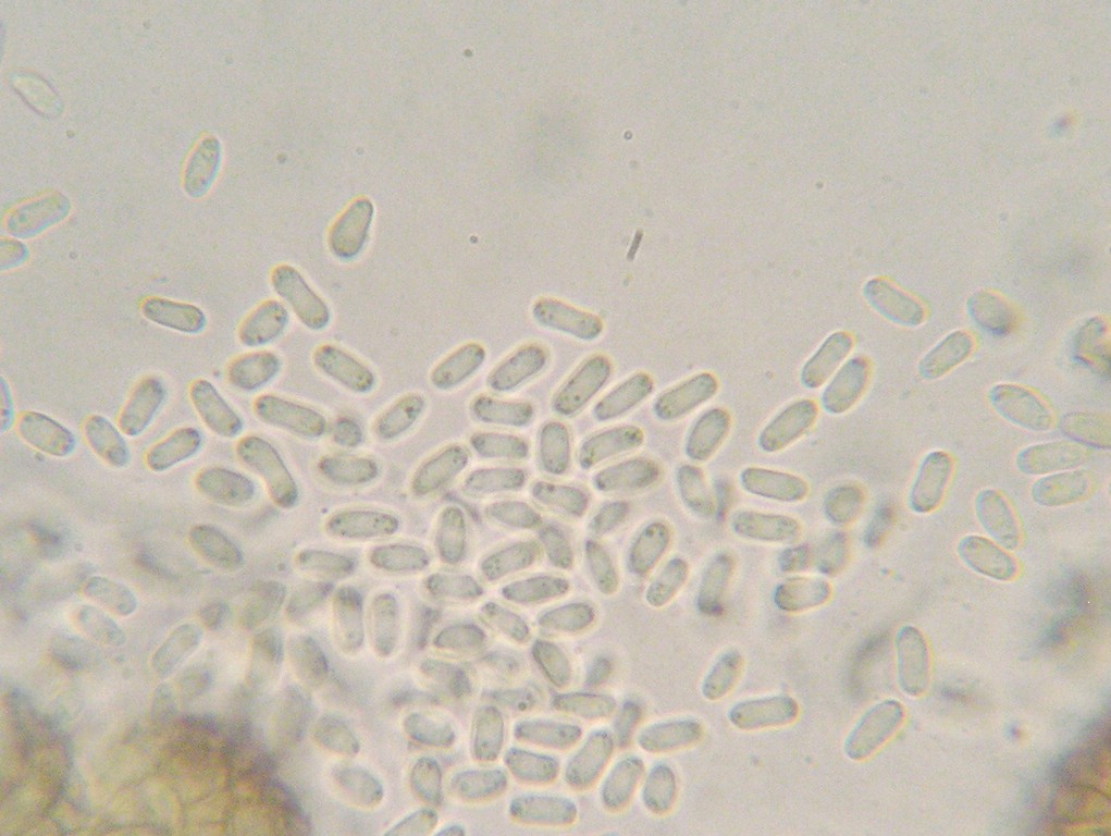 Sie treten bei Feuchtigkeit als Masse aus den Trägern aus, sind farblos, breit stäbchenförmig, seltener eiförmig