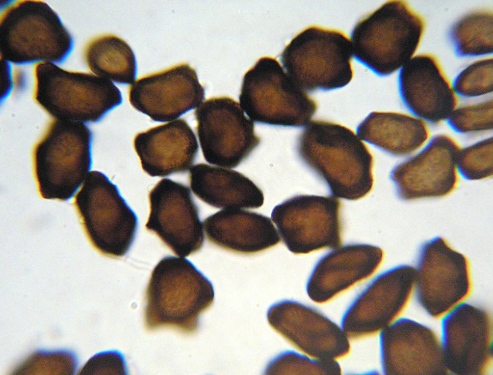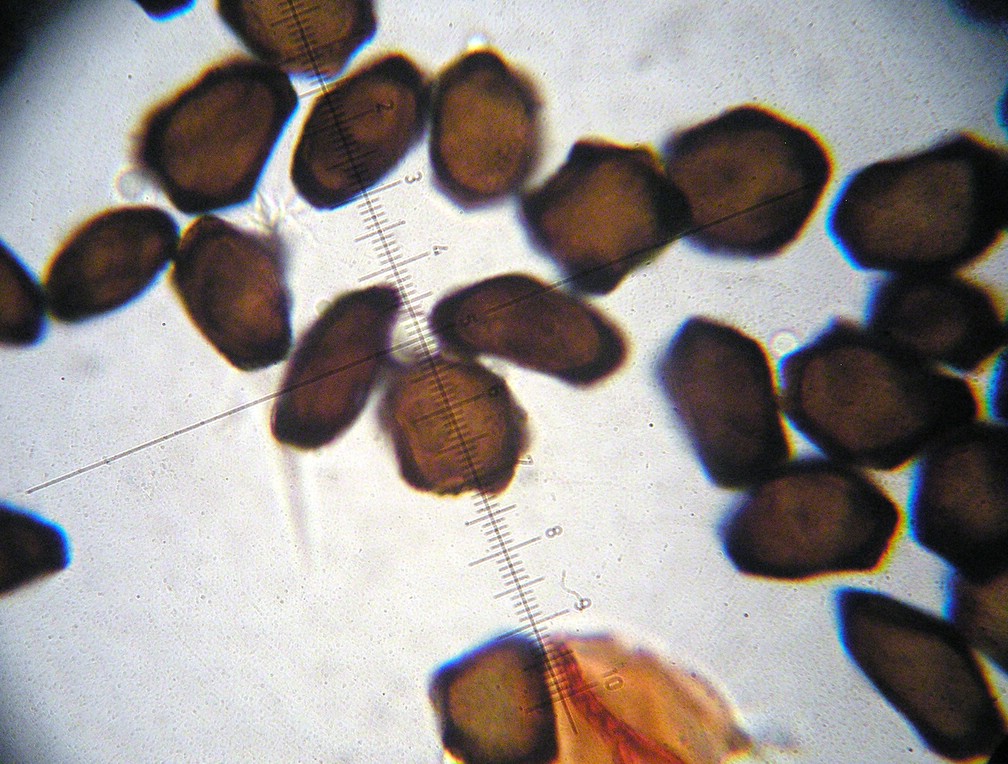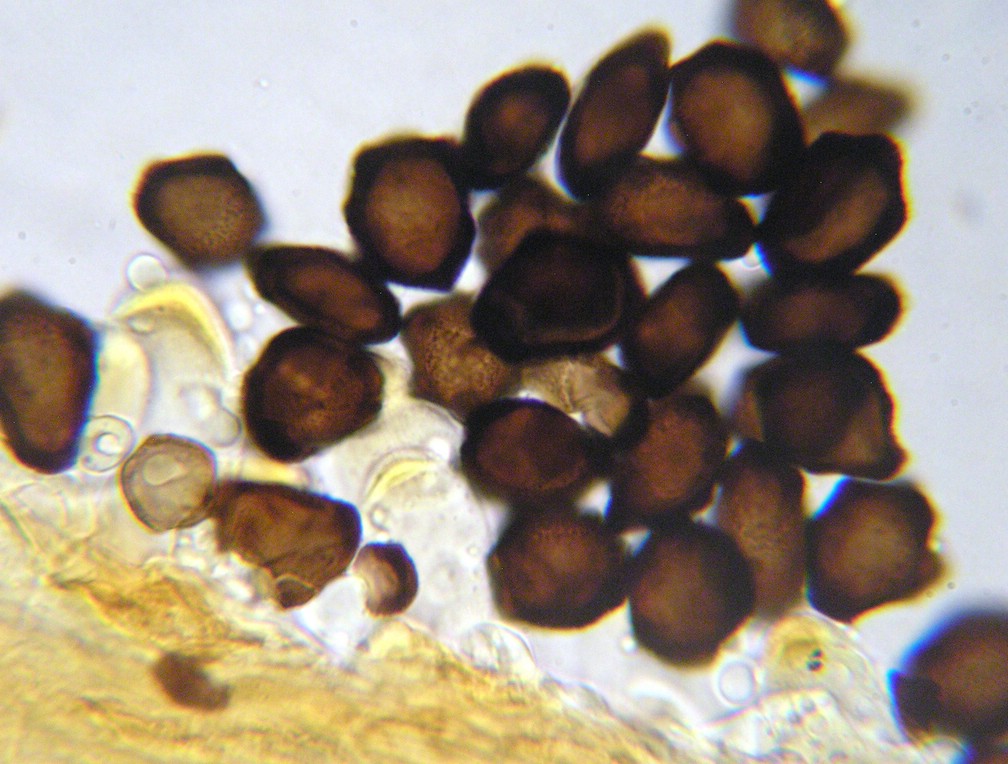 Sporen breit elliptisch bis eiförmig, selten auch irregulär oder eckig, 16-20 x 14-16 µm, oft mit deutlichen Auswüchsen