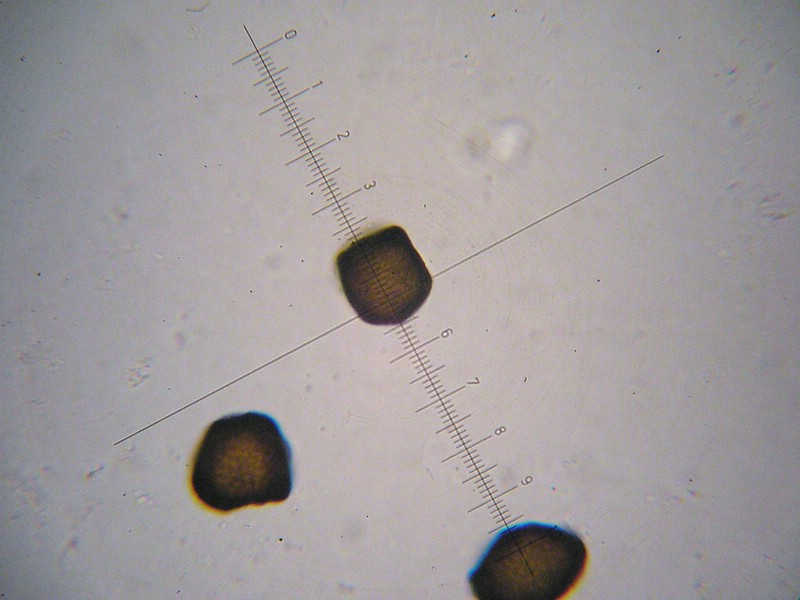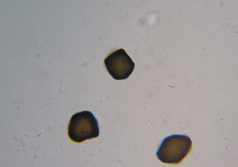 OLYMPUS DIGITAL CAMERASporenwand dunkelbraun, ungleichmäßig dick (1-3 µm), mit vielen Auswüchsen, an den Ecken etwas dicker, schwache Anschwellungen nach innen vorhanden