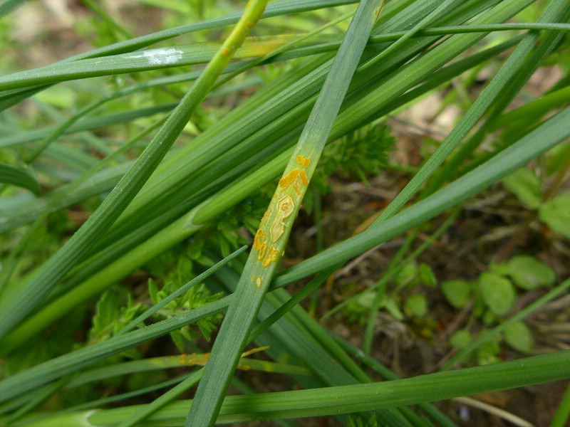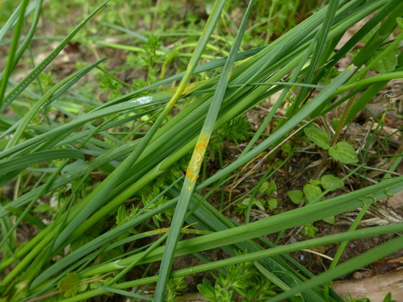 Bemerkung: Dieser Rostpilz vollführt einen Wirtswechsel. Es handelt sich hierbei um eine Artengruppe, die mehrere Arten zusammenfasst, die ein Caeoma auf Lauch ausbilden. Die genaue Art kann nur über die Kenntniss des Wirtswechselpartners bestimmt werden, hinweise geben aber bereits die Anordung und Form der Spermogonien. Während auf verschiedenen Laucharten die Spermogonien und Aecien gebildet werden, wechselt der Pilz im Sommer auf verschiedene Vertreter der Weidengewächse (Salicaceae) um dort seine Entwicklung mit der Ausbildung von Uredien und Telien zu vollenden.