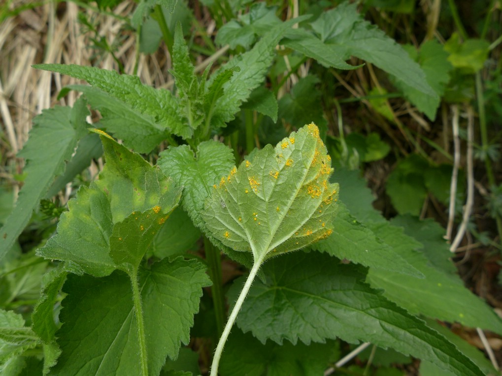 Uredien auf der Blattunterseite zerstreut, jung von der Epidermis bedeckt, später stäubend