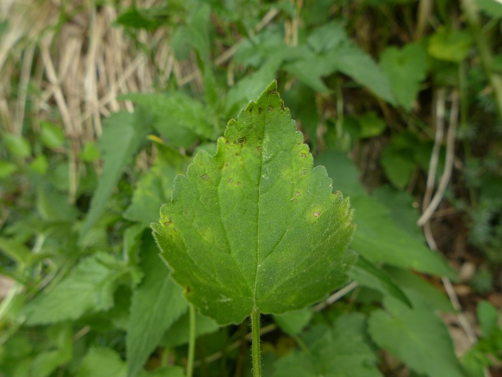 Oberseits ist ein Befall durch auffällige gelbe Fleckenbildung erkennbar