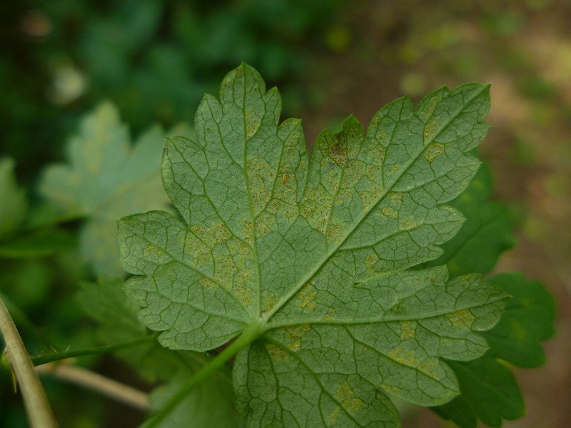 Befallene Blattstellen sind oberseits gelblich verfärbt