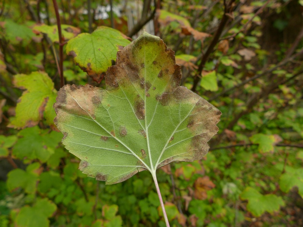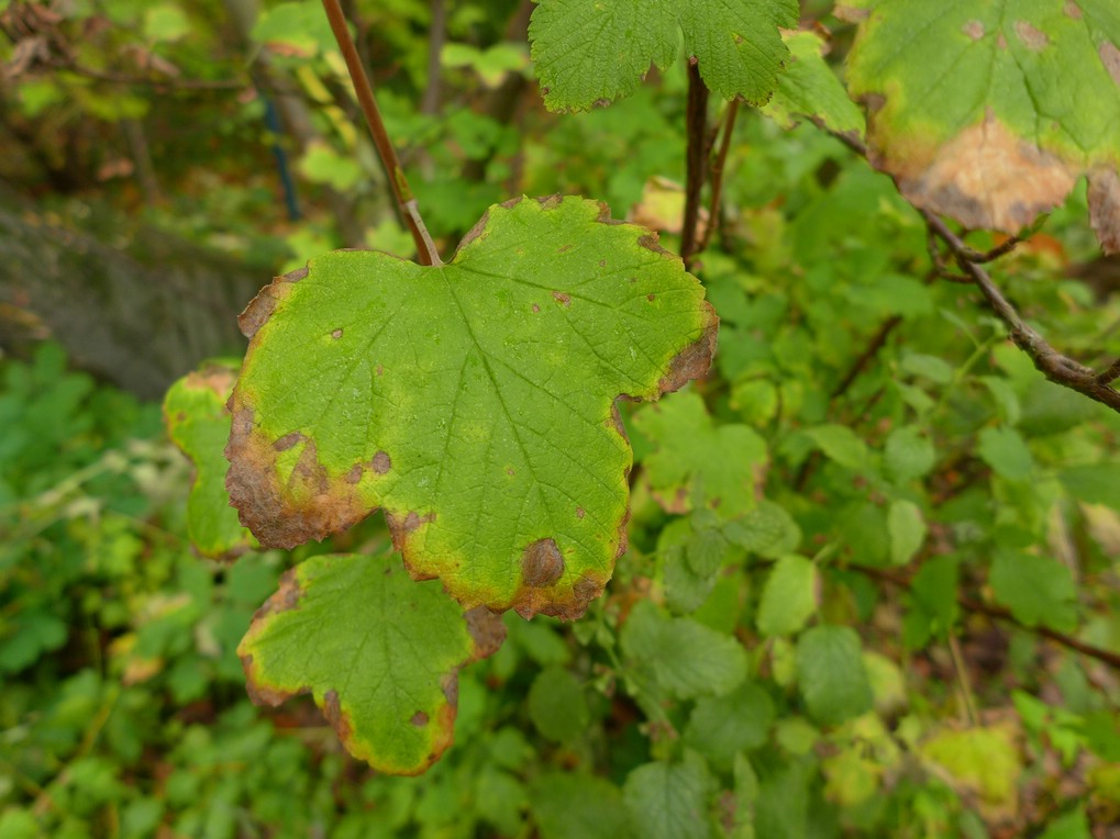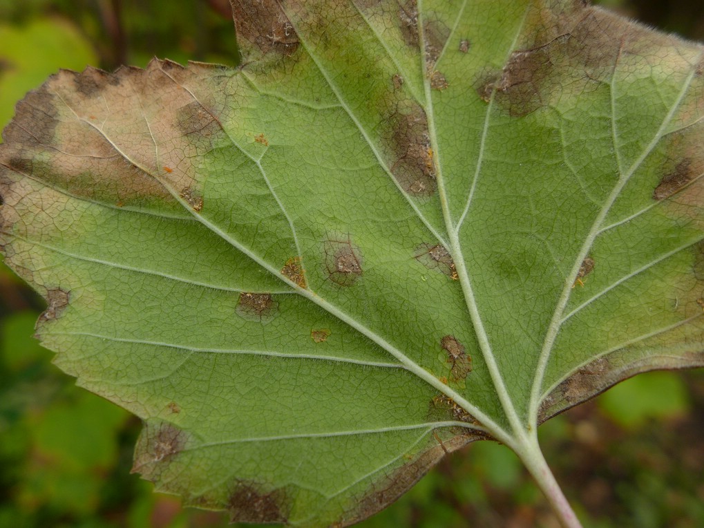 Befallene Blattstellen sind oberseits gelblich verfärbt