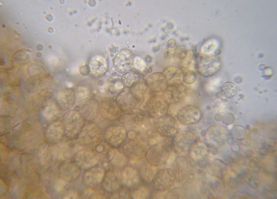Sporenballen: kleine braune Punkte die an „Insektenkot“ erinnernOLYMPUS DIGITAL CAMERASporenballen rundlich, 110-205 µm im Durchmesser, aus sterilen Zellen und Sporen bestehend