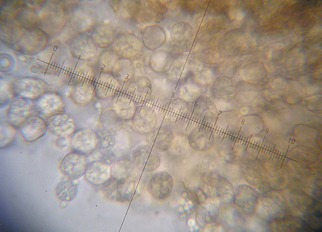 OLYMPUS DIGITAL CAMERASporen kugelig bis eiförmig oder irregulär, blass gelblich, 10-11 x 7-9 µm, Wand glatt und ca. 0,8 µm dick.