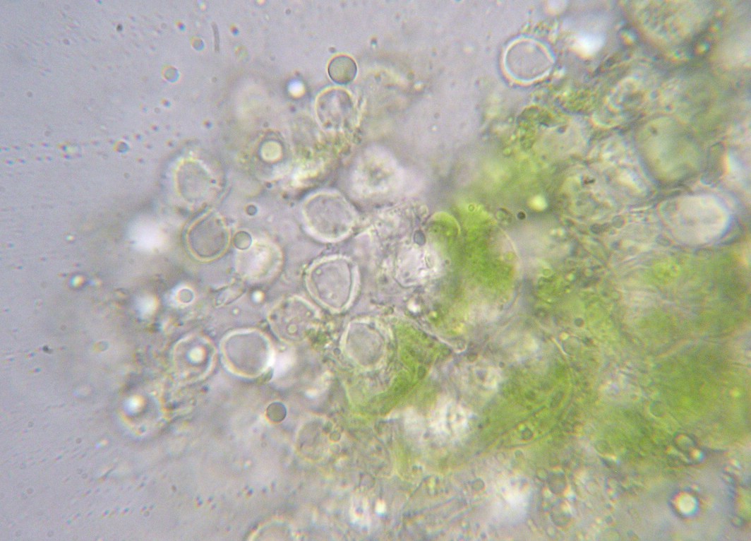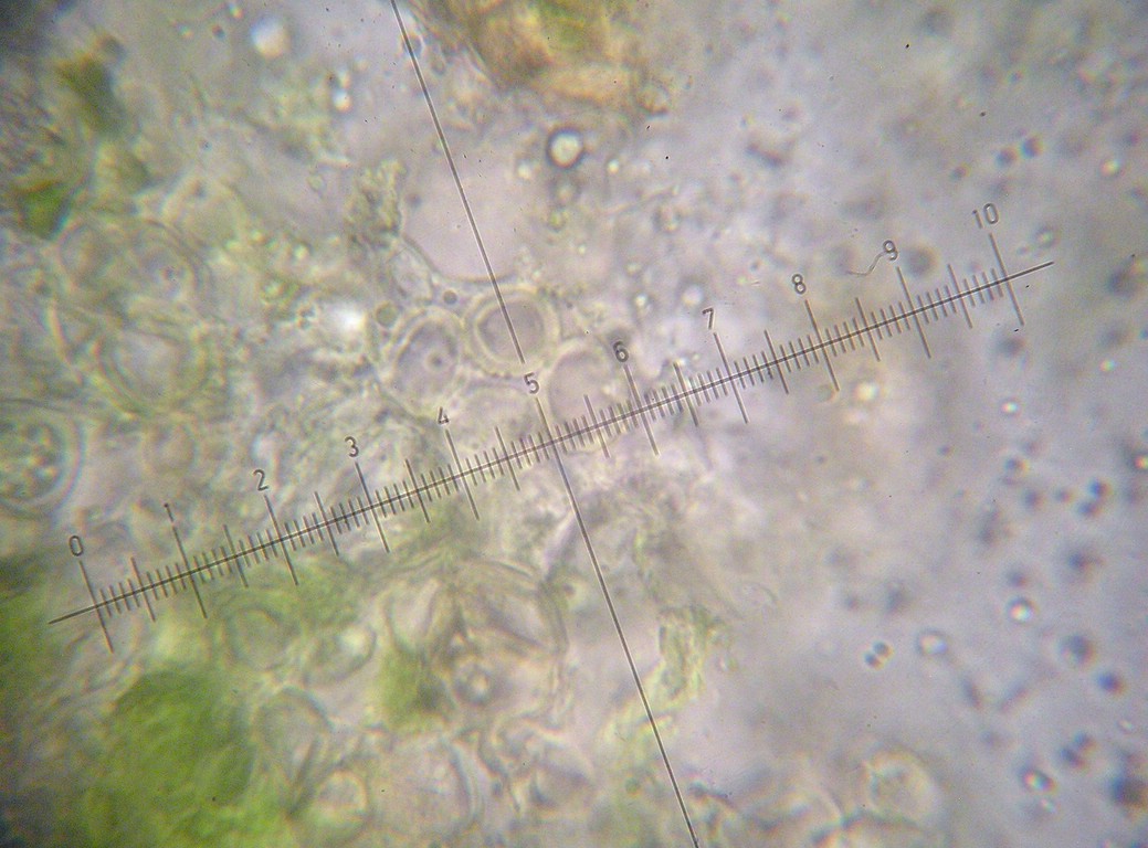 Sporen rundlich bis eiförmig, oft auch irregulär, 10-11 x 8-9 µm, farblos bis blass gelblich
