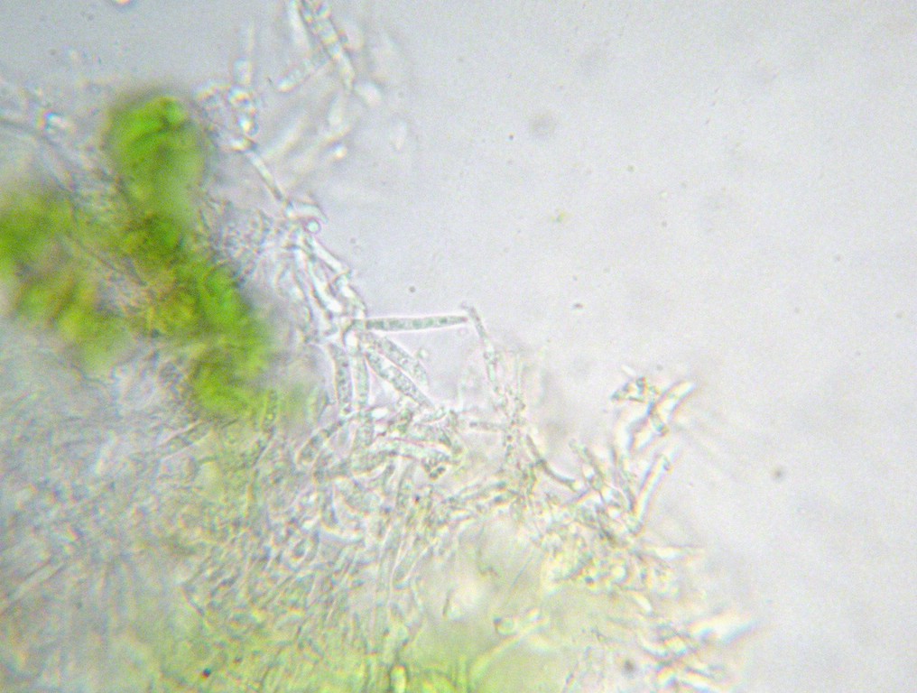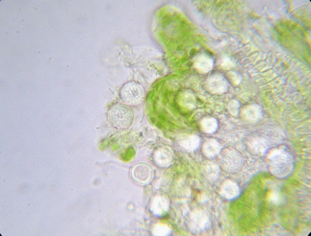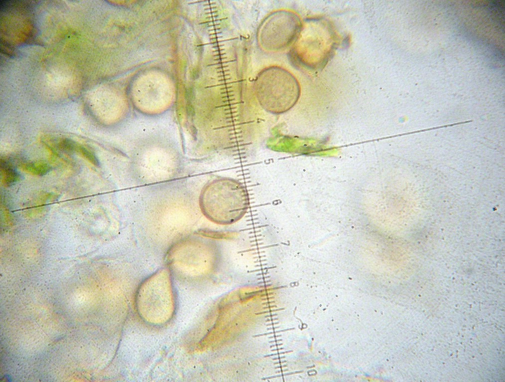 Sporen rundlich bis eiförmig, 10-12 x 9-11 µm, farblos bis blass gelblich