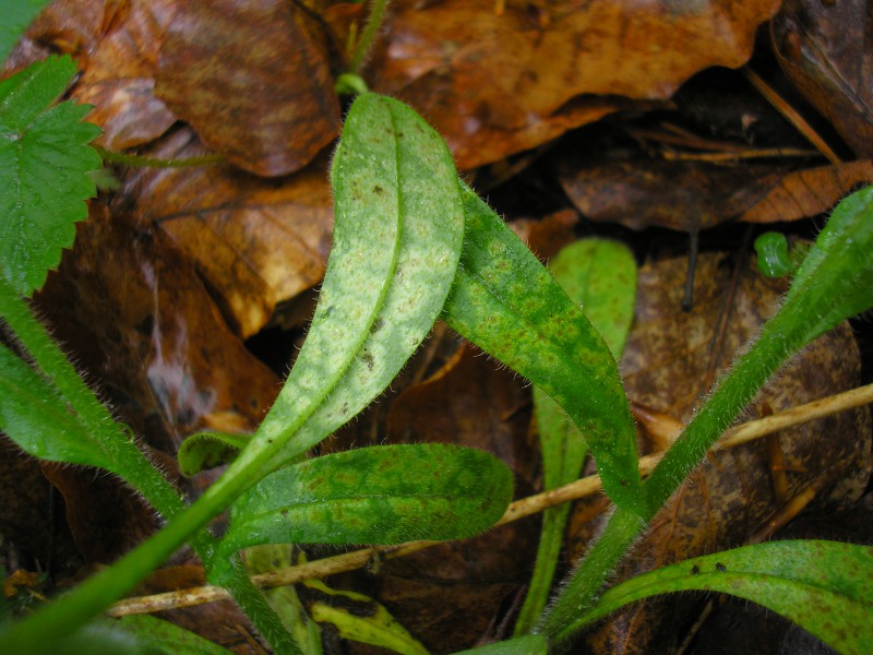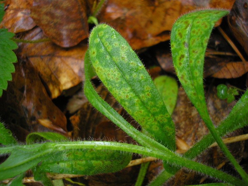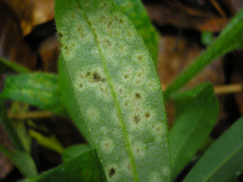 Blattflecken jung weißlich, gelblichweiß oder grünlich, später braun (vor allem in der Mitte).