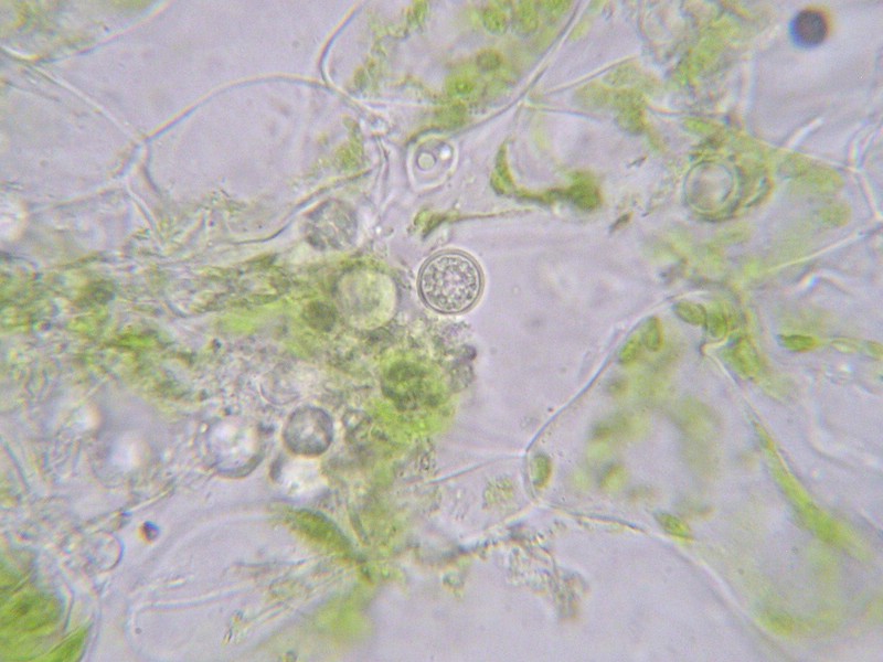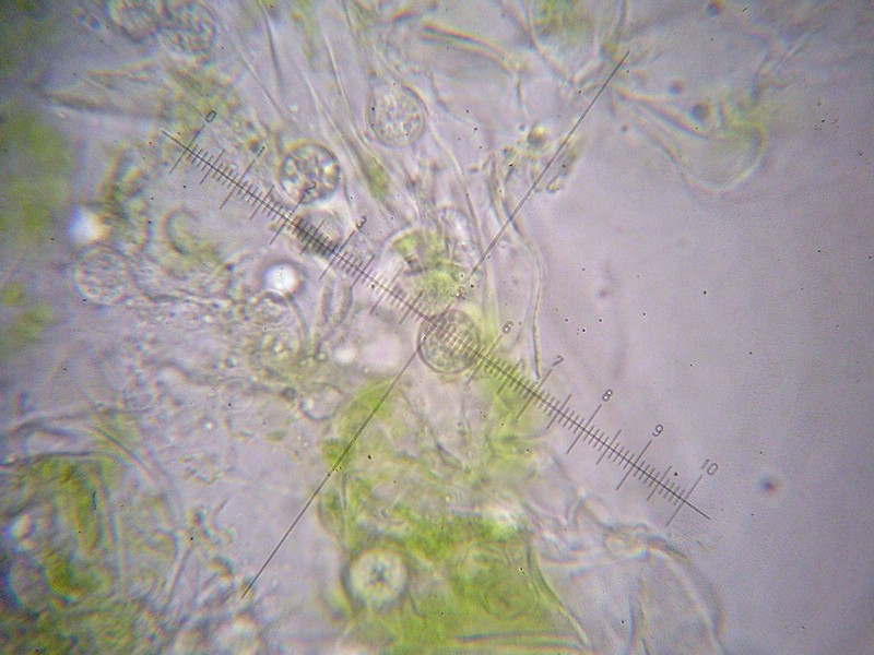 Sporen rundlich bis eiförmig, 10-12 x 9-11 µm, farblos bis blass gelblich