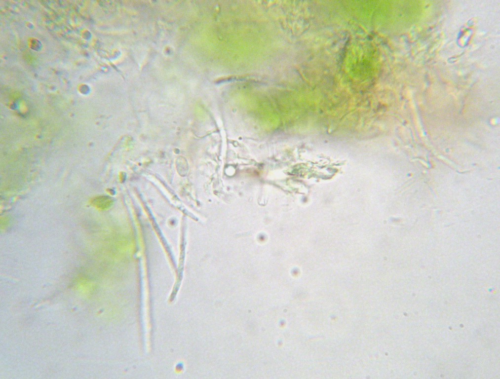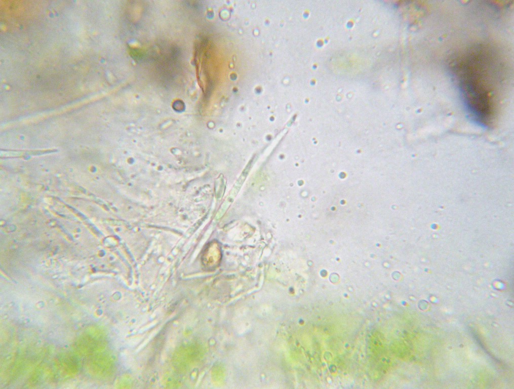 Sporenmasse im Durchlicht dunkel durchscheinend.