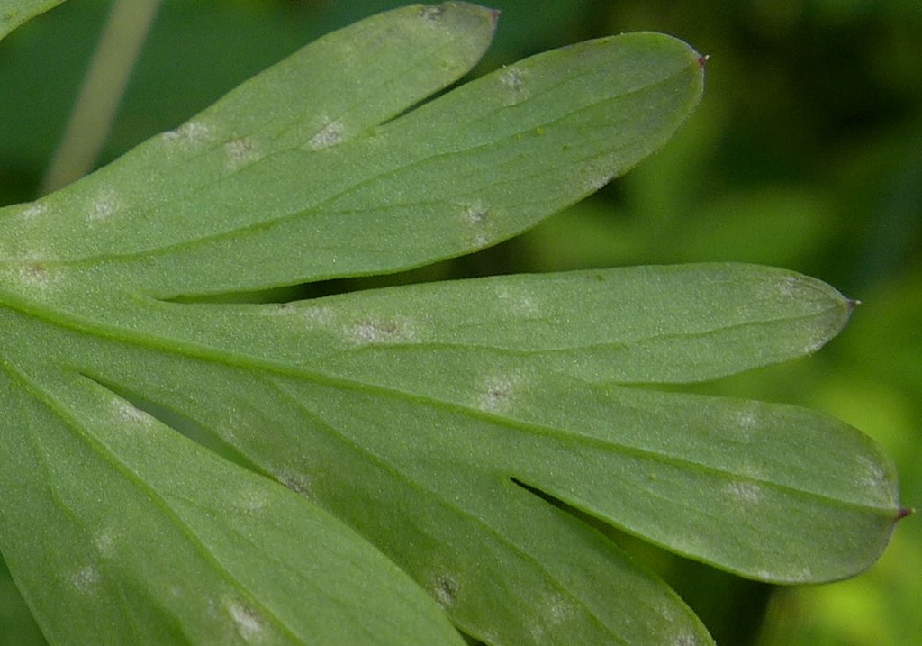 Blattflecken jung weißlich, gelblichweiß oder grünlich, später braun
