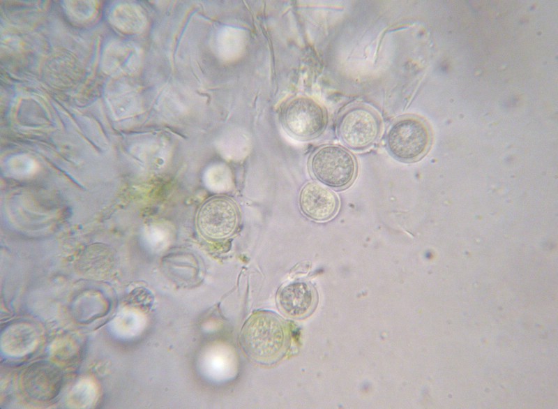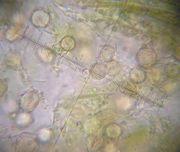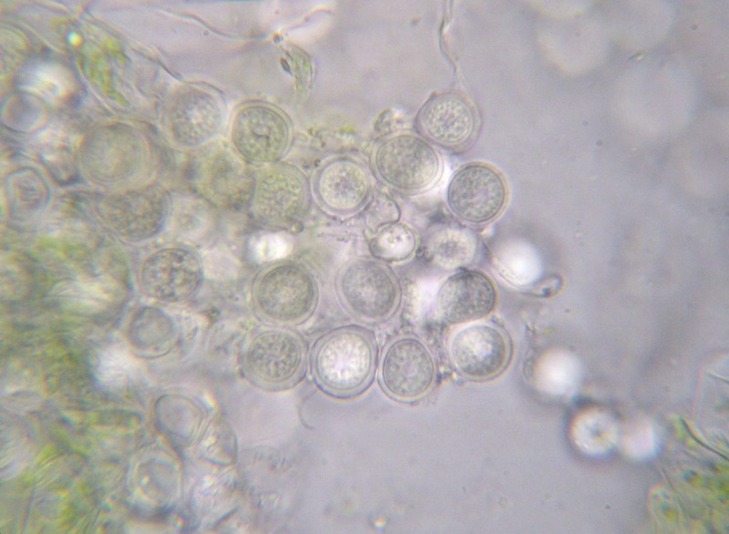 Bemerkung: Viele Arten der Gattung Entyloma bilden eine Anamorphe (Entylomella) aus, welche makroskopisch als weißlicher Rasen auf den Blattflecken und mikroskopisch in farblosen, etwas gekrümmten Konidien zu erkennen ist.