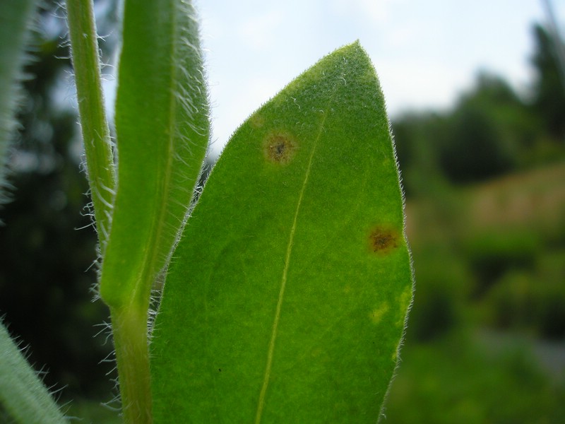 Blattflecken erscheinen im Durchlicht dunkel (Sporenmasse!)