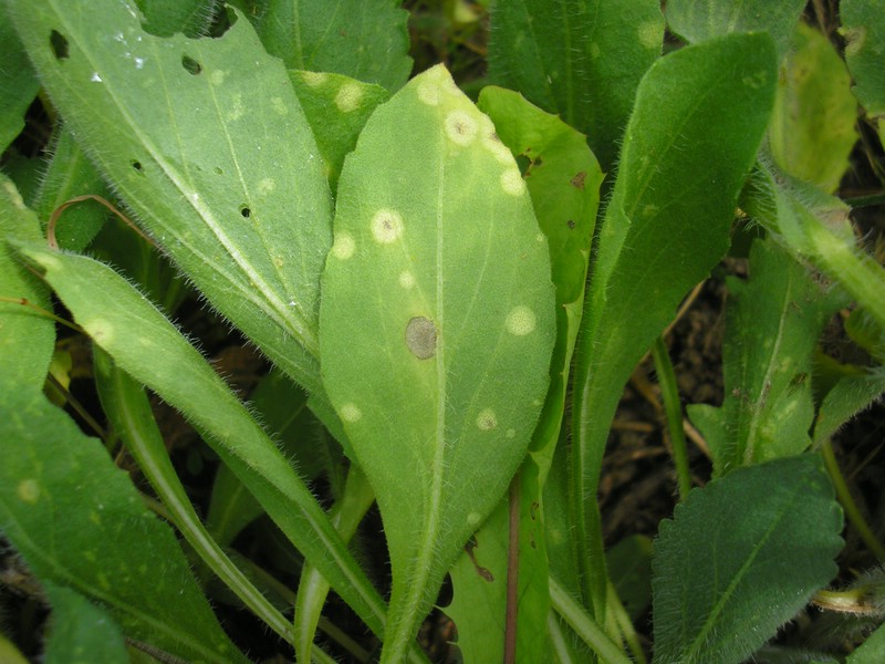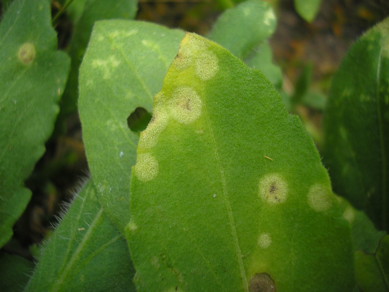 Auf den Flecken wird im Frühjahr die Anamorphe des Brandpilzes (Entylomella spec.) als weißer Rasen ausgebildet