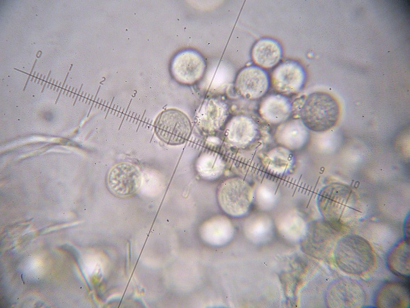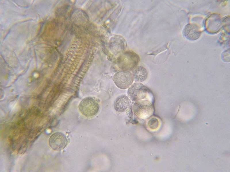 Sporen hyalin, rund und glatt (dickwandig)
