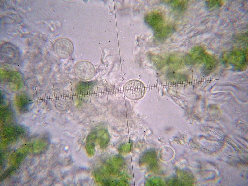 Bemerkung: Viele Arten der Gattung Entyloma bilden eine Anamorphe (Entylomella) aus, welche makroskopisch als weißlicher Rasen auf den Blattflecken und mikroskopisch in farblosen, etwas gekrümmten Konidien zu erkennen ist.