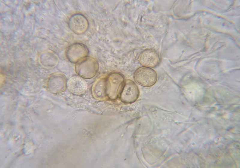Sporen rundlich bis eiförmig oder irregulär, 10-12 x 10-11 µm