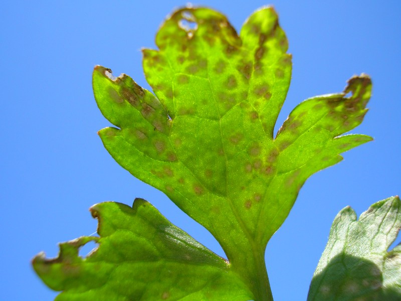 Im Durchlicht erscheinen die Flecken dunkel (mit Sporenmasse gefüllt)