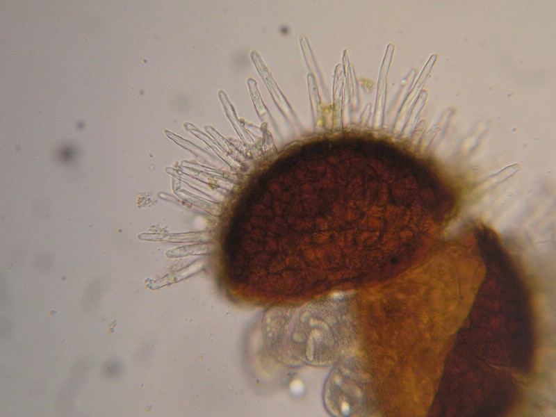 Anhängselspitze hakig zurückgebogen (hier junge Anhängsel, die noch gerade sind)