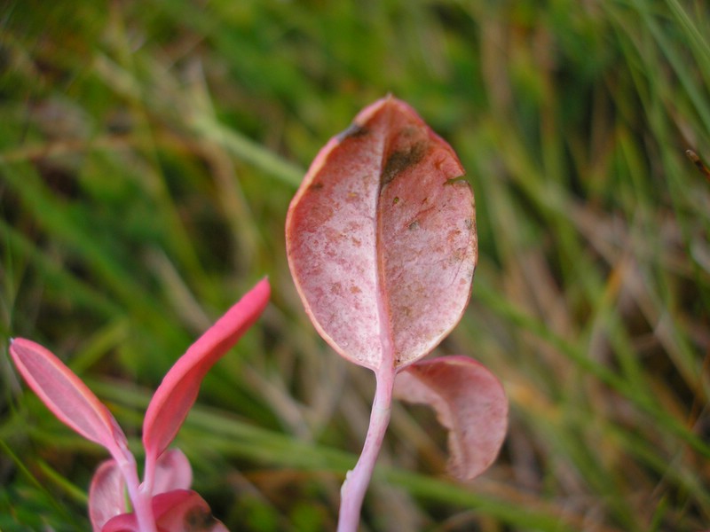 Triebe oft deformiert, die Blätter rötlich und stark verbreitert