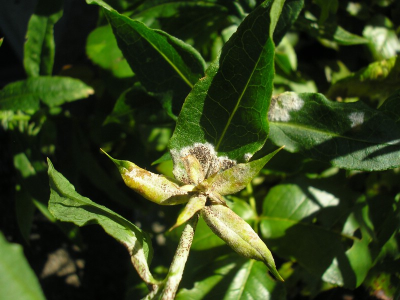 Bei Reife werden im Myzel regelmäßig Chasmothecien gebildet, die dunkle Flecken verursachen