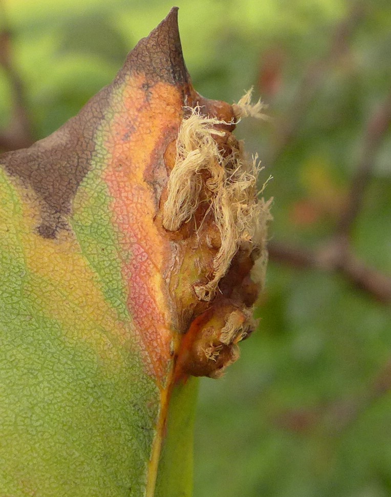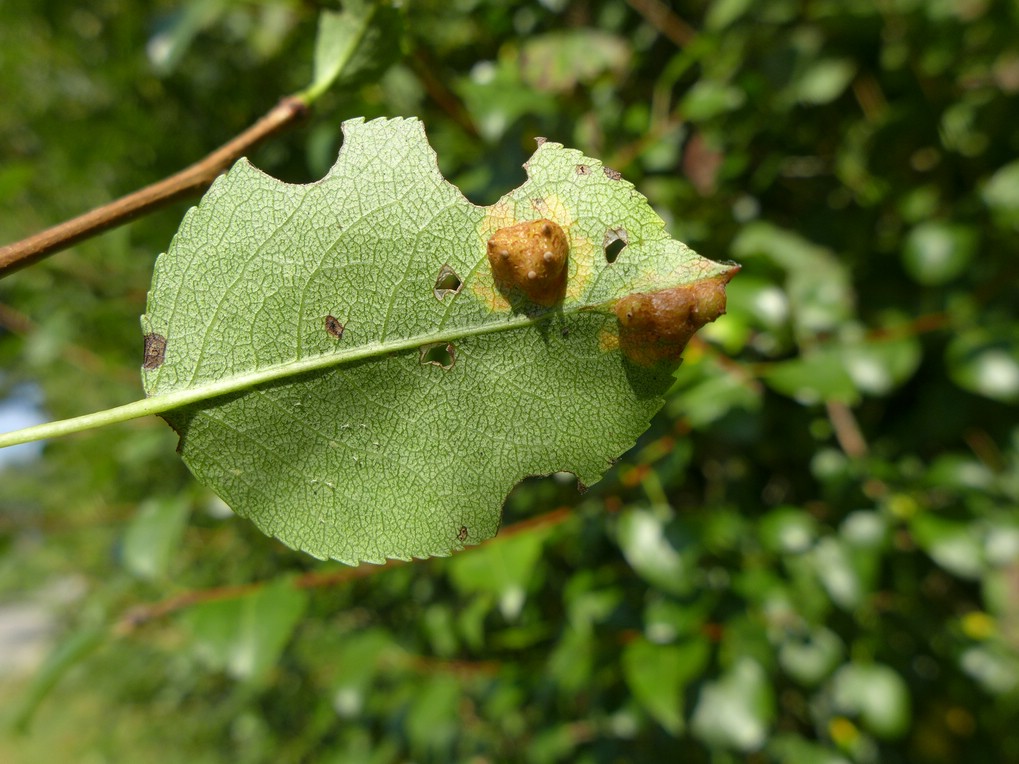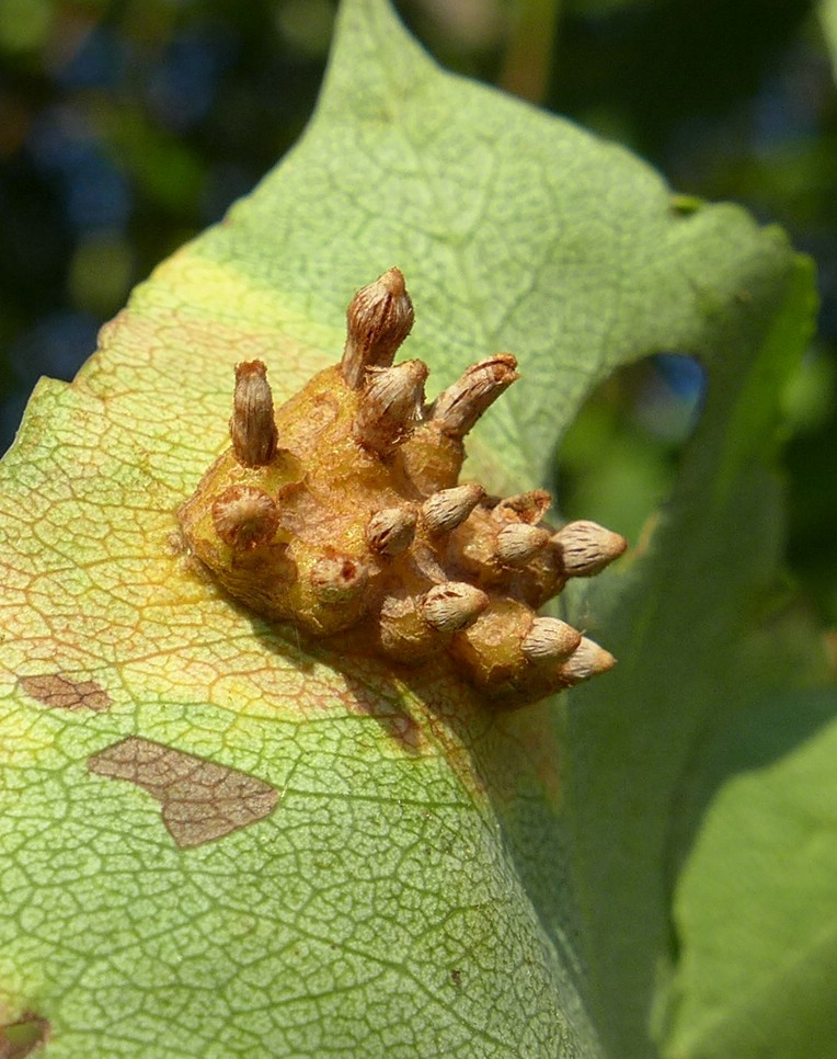 Blattunterseits Ausbildung der Aezien (Roestelien) – hier noch junge Aezien mit unvollständig ausgebildeter Pseudoperidie