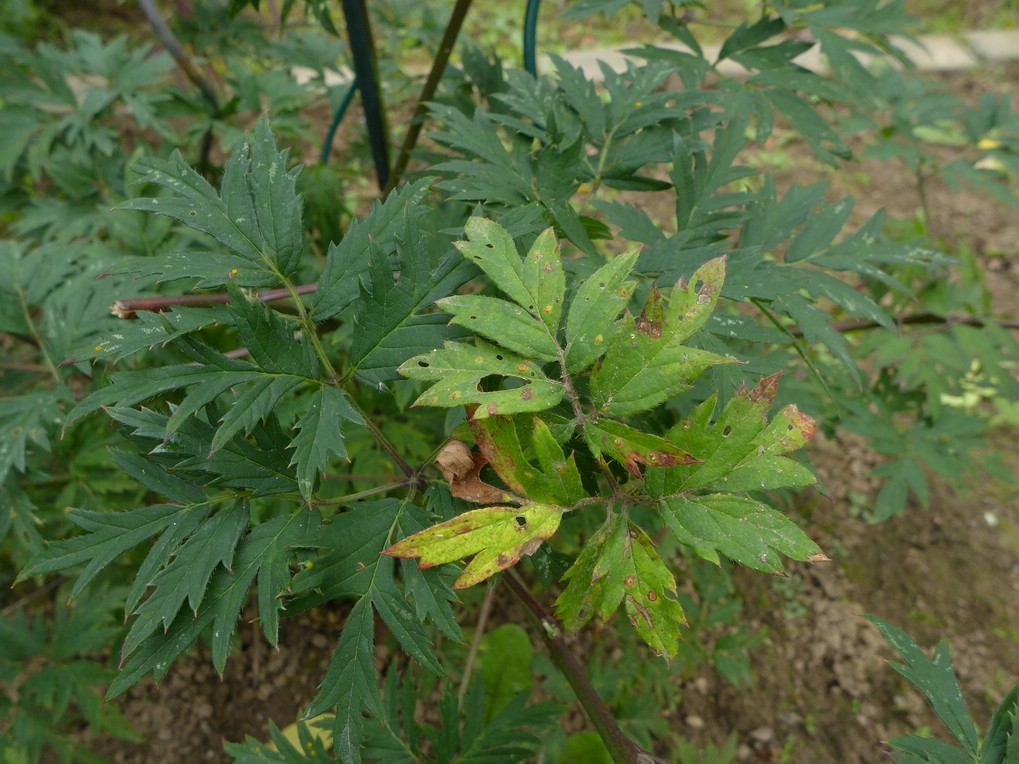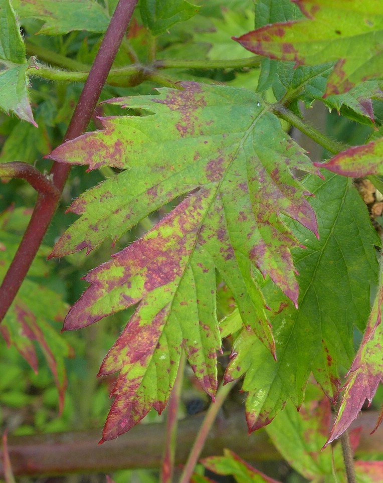 Detail der rötlichen Blattflecken