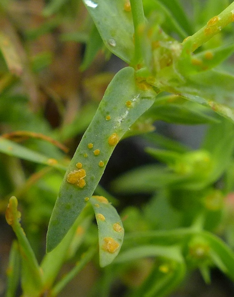 Uredien orange, beiderseits der Blätter oder am Stängel, pulverigDetail der Uredien