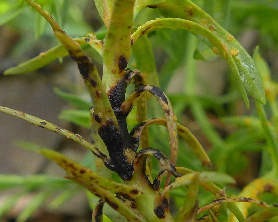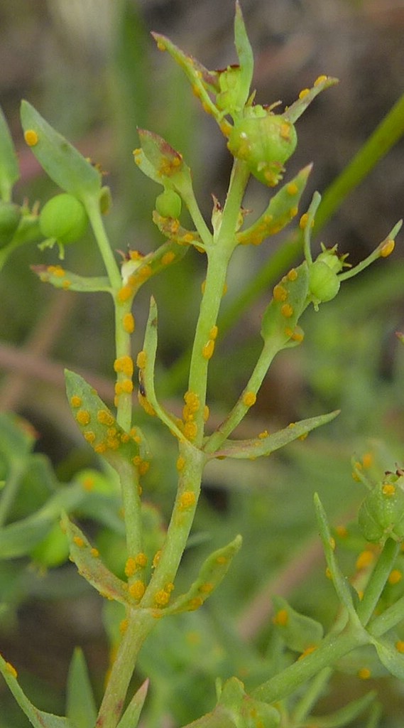 Bemerkung: Dieser Rostpilz vollführt keinen Wirtswechsel. Auf Wolfsmilch (Euphorbia) werden die Spermogonien, Aezien, Uredien und Telien ausgebildet.