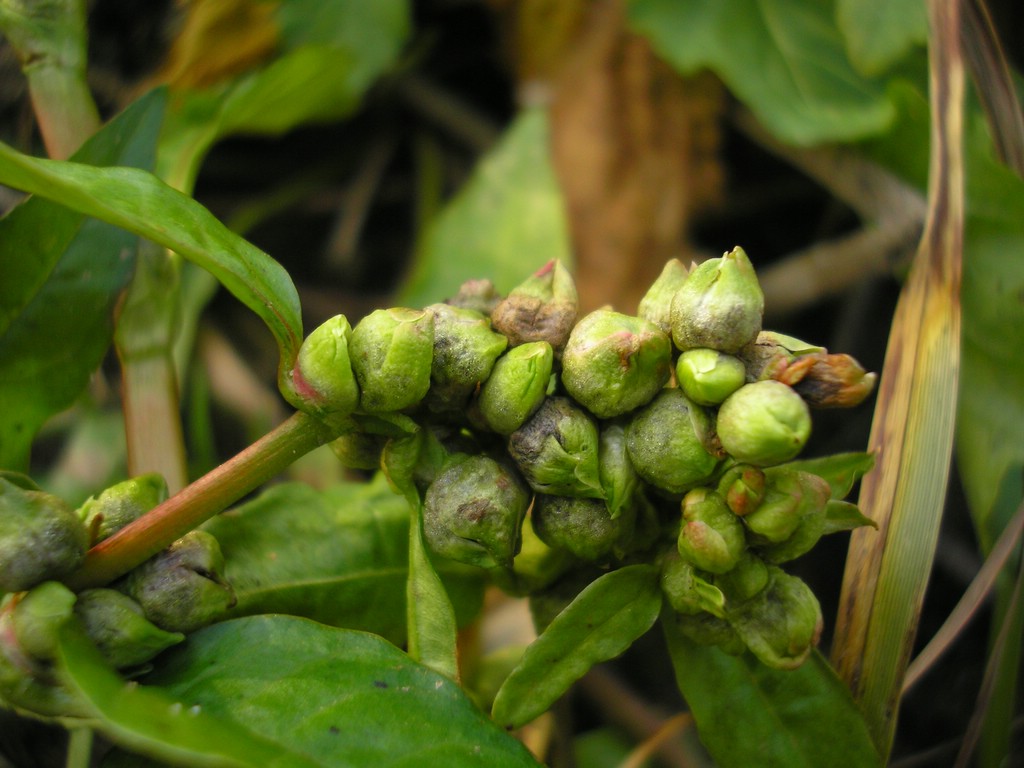 Befallene Blütenknospen mit Sporenmasse gefüllt und dadurch anormal angeschwollen