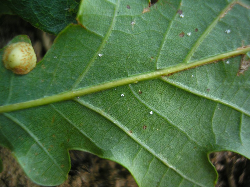 Blattunterseits ein punktförmiger weißer Rasen aus gebündelten Basidienträgern