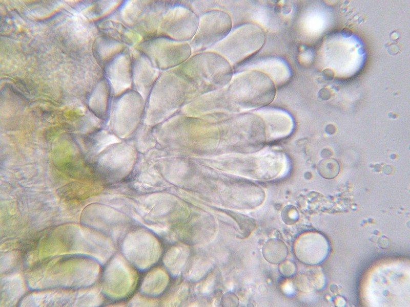 Teliosporen pallisadenartig, dicht nebeneinander stehend, am Scheitel gerundet