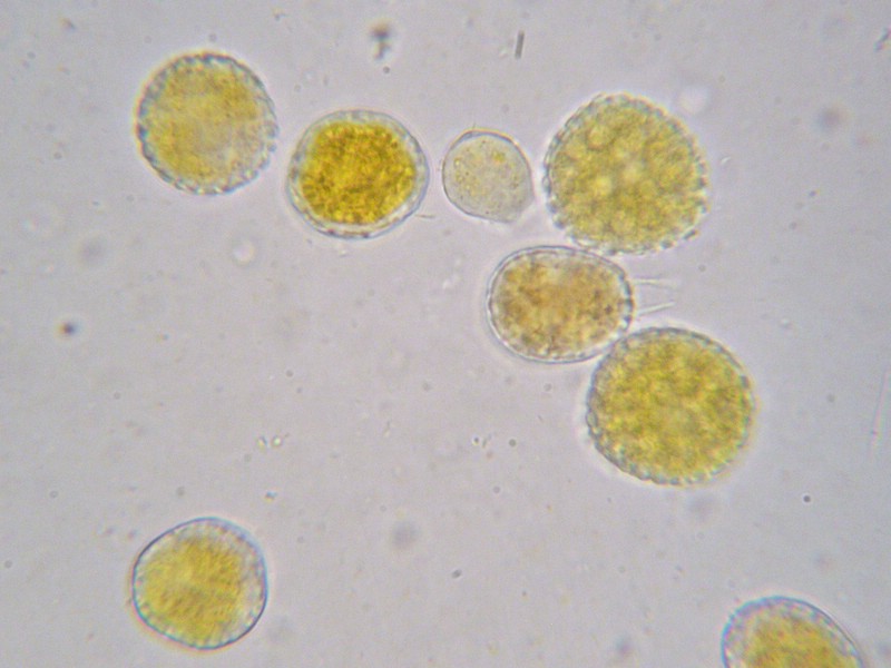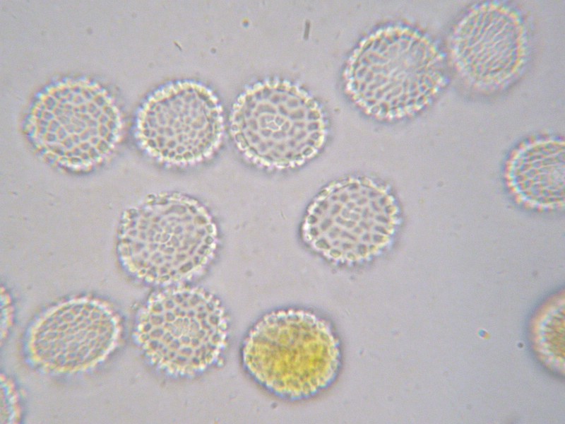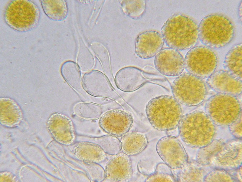 Uredosporen kugelig bis eiförmig, 20-24 x 19-22 µm