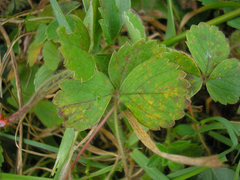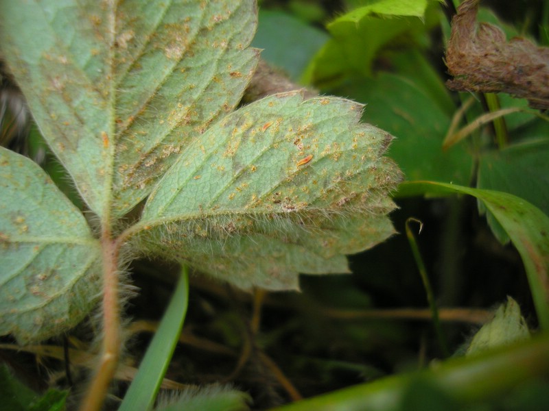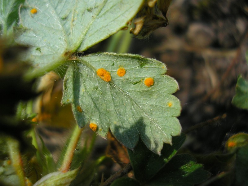 Bemerkung: Dieser Rostpilz vollführt keinen Wirtswechsel. Auf Fingerkraut (Potentilla) und Erdbeere (Fragaria), auf letzterem nur sehr selten, werden die Spermogonien, Aecien (Caeoma), Uredien und Telien gebildet.
