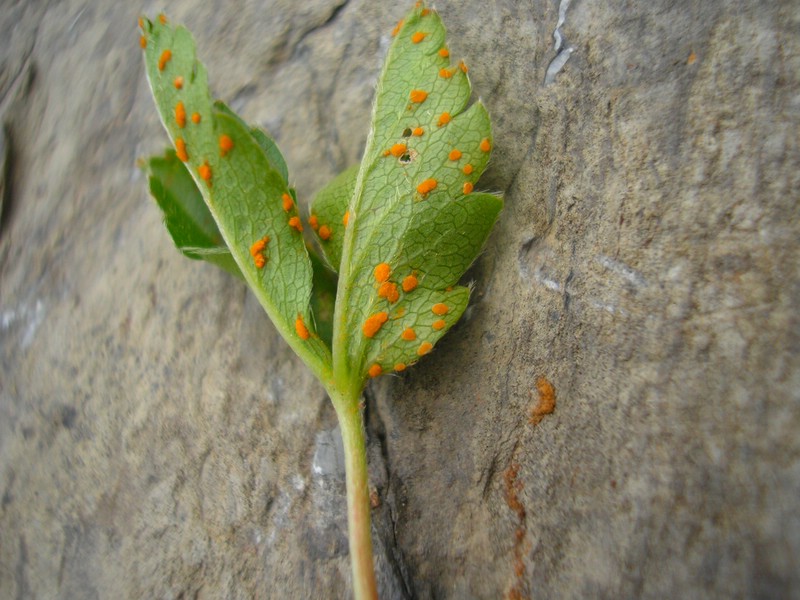 Bemerkung: Dieser Rostpilz vollführt keinen Wirtswechsel. Auf Fingerkräutern (Potentilla spec.) werden die Spermogonien, Aecien (Caeoma), Uredien und Telien gebildet.