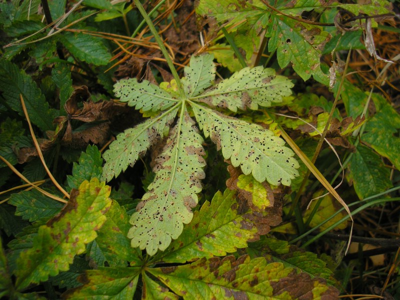 Bemerkung: Dieser Rostpilz vollführt keinen Wirtswechsel. Auf Fingerkräutern (Potentilla spec.) werden die Spermogonien, Aecien (Caeoma), Uredien und Telien gebildet.