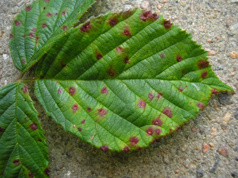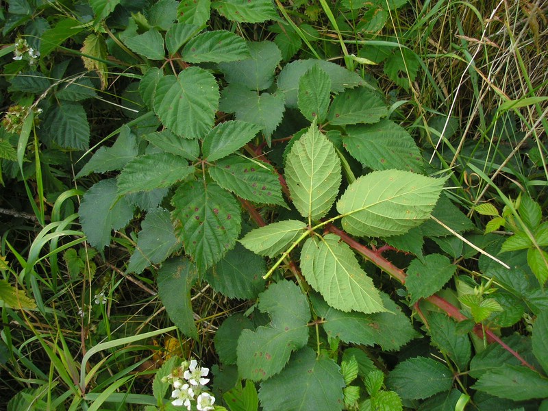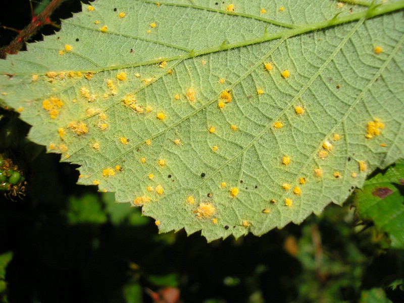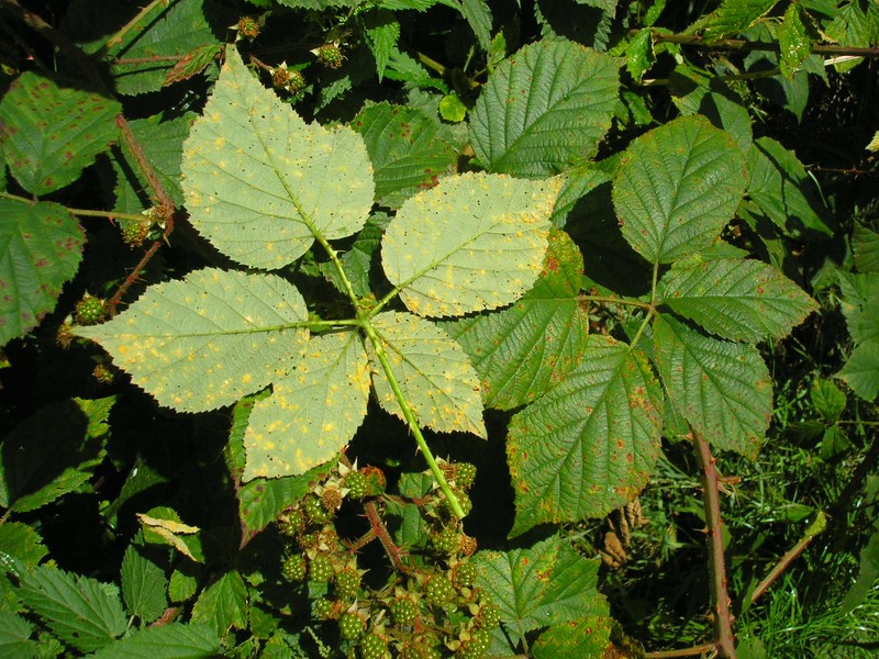 Bemerkung: Dieser Rostpilz vollführt keinen Wirtswechsel. Auf Brombeere (Rubus spec.) werden die Spermogonien, Aecien (Caeoma), Uredien und Telien gebildet.