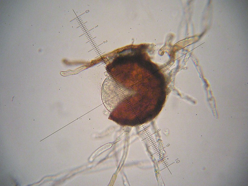 Pro Chasmothecium je ein 8-sporiger Ascus