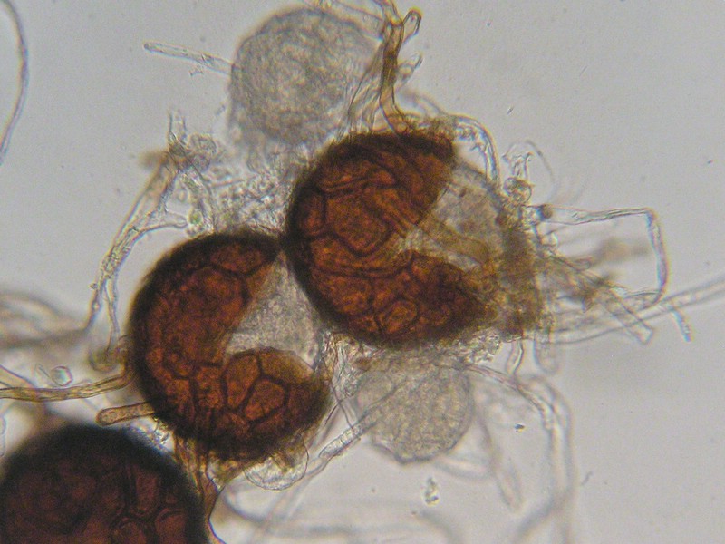 Bei Reife werden selten dunkle Chasmothecien ausgebildet