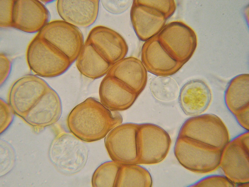 Teliosporen zweizellig, ellipsoid, an beiden Enden gerundet