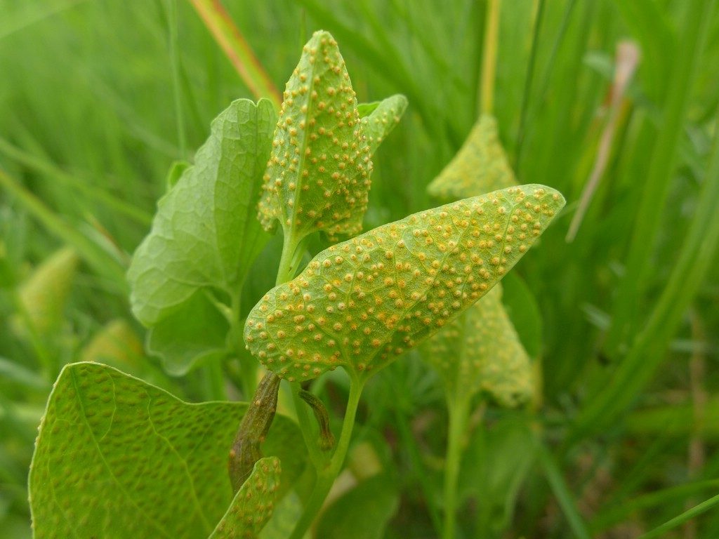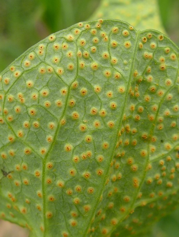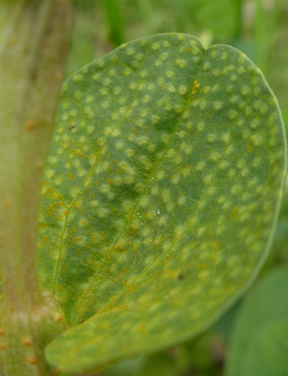Uredien ebenfalls regelmäßig auf der gesamten Blattunterseite verteilt