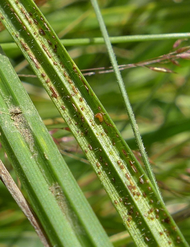 Hier mit zahlreichen Fruchtkörpern vom Hyperparasiten Eudarluca caricis
