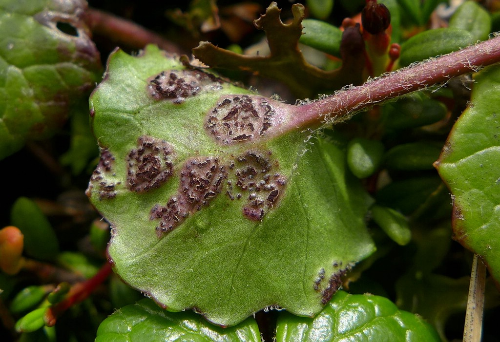 Bemerkung: Dieser Rostpilz vollführt keinen Wirtswechsel. Er verkürzt seinen Entwicklungszyklus und bildet nur Telien auf Alpenlattich (Homogyne ssp.) aus.