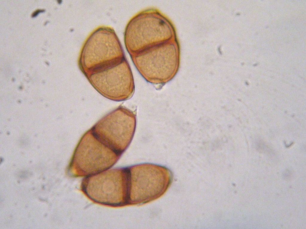 Telien ziemlich dichtstehend, von den Resten der Epidermis umgeben, dunkelbraun, in Gruppen