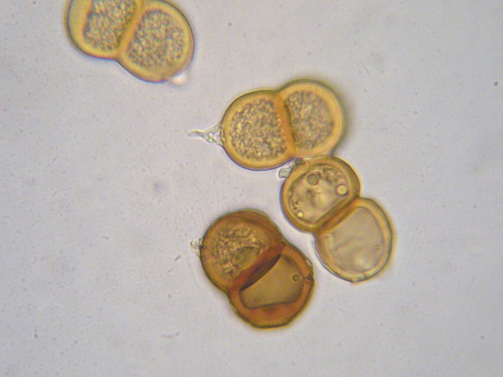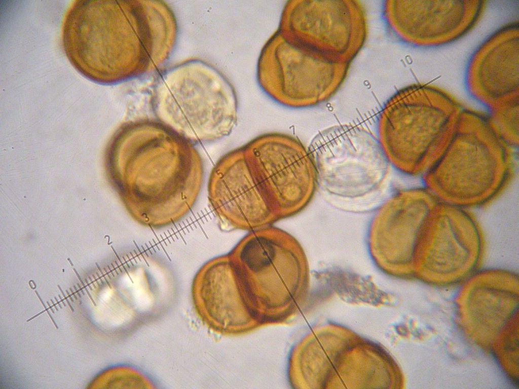 Teliosporen mittig stark eingeschnürt, am Scheitel meist stark verdickt